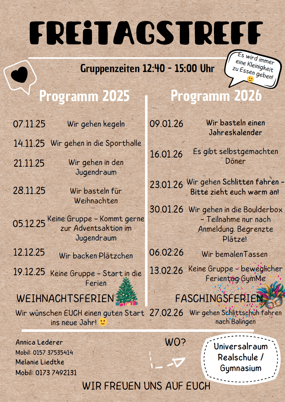 Immer Freitags direkt nach der Schule im Universalraum...! Für alle Schülerinnen und Schüler der beiden Schulen.