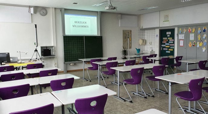 Für die Klassen steht ein Satz iPads zur Verfügung, die von den Lehrkräften in den Unterricht integriert werden können. Alle Zimmer sind auch mit Apple TV ausgestattet.